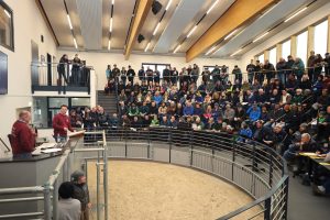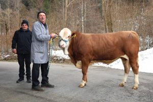 Das erste Highlight der Versteigerung konnte gleich zu Beginn verzeichnet werden. Der mischerbig hornlose „Hockey PS“ – Sohn (Katalognummer 1) vom Zuchtbetrieb Josef Dieplinger aus Altenmarkt und aufgezogen von Josef Deutinger aus Bockhorn konnte zu einem Spitzenpreis von 56.000 € verkauft werden. Ersteigert wurde der sehr gut entwickelte Bulle von der Besamungsstation Bayern Genetik aus Grub. Neben einem hohen Gesamtzuchtwert von 139 waren auch die Einzelzuchtwerte für den Kauf ausschlaggebend. So lagen alle relevanten Zuchtwerte im positiven Bereich, hinzu kommen eine Fundamentnote von 111 und eine Euternote von 119. Er soll in Zukunft auf den Namen „Hartholz PS“ hören und die gute Fleckviehgenetik aus dem Traunsteiner Zuchtgebiet weiterverbreiten. Auch bei den Natursprungbullen konnte ein durchaus zufriedenstellender Marktverlauf erreicht werden. Von den acht angebotenen Stieren konnten sieben einen neuen Besitzer finden und auch der durchschnittliche Steigpreis von fast 3.400 € (Preisspanne von 3.000 – 4.000 €) überzeugte.