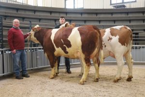 Bei der anschießenden Versteigerung der Mehrkalbskühe konnte der Höchstpreis der weiblichen Zuchtrinder verzeichnet werden. Die Zweitkalbskuh von der Kirchmaier Fr. Agrar GbR aus Schützing bei Chieming (Katalognummer 30) konnte mit einem Lebendgewicht von 750 kg und einer überragenden Milchleistung von 46,5 kg Milch überzeugen und somit einen rekordverdächtigen Versteigerungspreis von 4.100 € rechtfertigen.